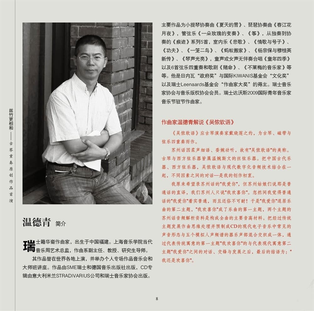 “丝竹”即中国乐器的传统组合,以国乐器和西乐器的现代重奏形式,喻“相和”之意。“丝竹更相和”音乐会开创了前所未有的大量、集中新作作为一台古琴音乐会的举动,即整场演奏曲目皆为现代重奏作品,打破了古琴音乐会以传统古曲为主的先例。除四首原创作品外,作曲家陆培(美国)、朱晓谷、于洋、姜莹将传统古曲进行了重新改编,以重奏的形式重新演绎。在古琴与其它乐器的交融与碰撞间,打造多元视角下的当代古琴。